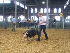 Ms. Rachel showing her heart out (by the way this is our Grand Champion gilt)